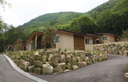 양양에서 가장 큰 젖줄인 남대천은 우리나라 동해로 흐르는 물줄기 중에 생태적으로 양호한 편이라 바다에서 찾아오는 물고기가 많다. 이른 봄의 황어, 초여름의 은어, 늦가을의 연어가 계절마다 남대천을 거슬러 오르는 대표적인 손님이다. 이 남대천 하류의 안쪽 나지막한 봉우리 구탄봉 기슭에 양양 송이밸리 자연휴양림이 위치한다. 양양의 대표적인 특산물인 송이를 명패로 내건 송이밸리 자연휴양림은 단순한 숙박시설이 아니라, 백두대간 자연 생태계의 보전과 녹색 생태 체험을 두루 겸할 수 있는 산림문화 교육의 장이다. 귀여운 송이 조형물이 미소 짓는 입구를 지나 주차장을 벗어나면 관리사무소 앞 삼거리다. 왼쪽 길을 따르면 메인 숙박시