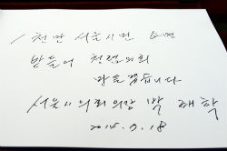 현재 서울시의회의 위상은 가슴이 아플 정도로 참담하다. 하지만 106명 의원들 모두가 함께 책임지는 모습을 보이면 새로운 기회와 희망의 역사를 만들 수 있다고 생각한다. 서울시의회가 서울시민들로 하여금 삶의 질을 향상시키고, 행복한 시민으로서의 자긍심을 고취시킬 수 있도록 해야 한다. 제9대 서울시의회 106명의 의원들은 우리 시민들이 공평과 정의가 살아있고 법치와 인권이 존중받는 서울에서 오늘보다 더 행복한 미래를 설계할 수 있도록 최선을 다해 일할 것이다. 서울 시민 여러분께 아낌없는 성원과 격려를 당부하는 바이다. <NP>