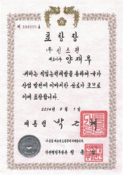 지난 9월 1일 고용노동부가 주최하고 한국산업인력공단이 주관한 ‘2014 직업능력의 달 기념식’이 열렸다. 올해로 18회째를 맞은 이 날에는 직업능력개발과 숙련기술 장려에 힘쓴 유공자들에 대한 포상도 함께 했다. 대통령 표창을 받은 (주)신스윈(양재부 대표이사)는, 공공직업능력개발을 통하여 맞춤형 인력자원개발과 공장혁신 활동으로 국가산업 발전에 크게 기여한 공로를 인정받았다.