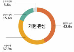 “개헌 관심 많다” 42.9%, 관심 많은 응답자일수록 개헌 찬성 및 빠른 논의 더 적극적