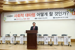 정 의장은 이어 "사회적 대타협은 우리사회가 한 차원 발전하기 위해 반드시 풀어야할 핵심과제"면서 "서로 배려하고 이해하고, 용서하고, 서로 감사하면서 무언가를 타협을 해내는 자세가 필요하다" 고 강조했다.