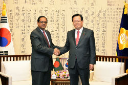 정 의장은 이어 "작년 한·방글라 수교 40주년을 맞아 의원단이 교환 방문하는 등 최근 의회 차원의 교류가 활발해지고 있다"면서 "방글라데시는 최근 6년 동안 연 6%대의 경제성장률을 유지하고 있는 만큼 계속 발전해가면 빠른 시일안에 선진국에 근접할 수 있을 것"이라고 밝혔다.