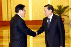 이에 대해 장더장 위원장은 "한중 FTA를 통해 양국은 가장 중요한 교역 동반자가 됐다"면서 "한중 FTA는 양국 관계의 이정표가 될 것이고, 아시아 번영의 중요한 영향을 미칠 것"이라고 답했다.