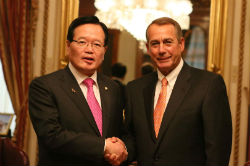 소식을 전해 들은 정 의장은 존 베이너 하원의장과 에드 로이스 하원 외교위원장에게 즉시 친전을 보냈다.