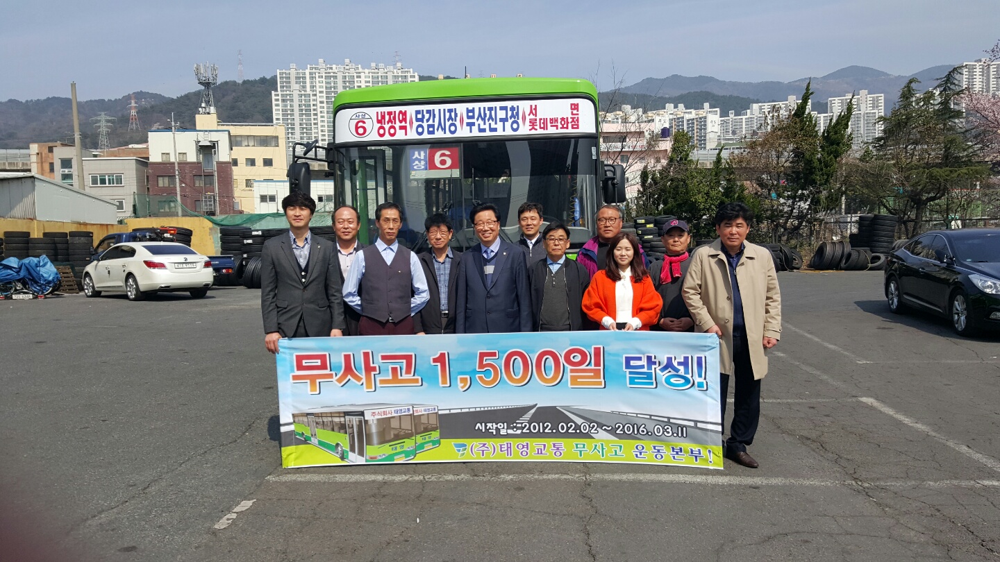 부산시 마을버스의 위상을 전국적으로 높이고 회사의 내실을 다지기 위해 시작한 (주)태영교통이 최근 무사고 1500일을 기록했다. 나아가 무사고 2000일 향해 순항 중이다.